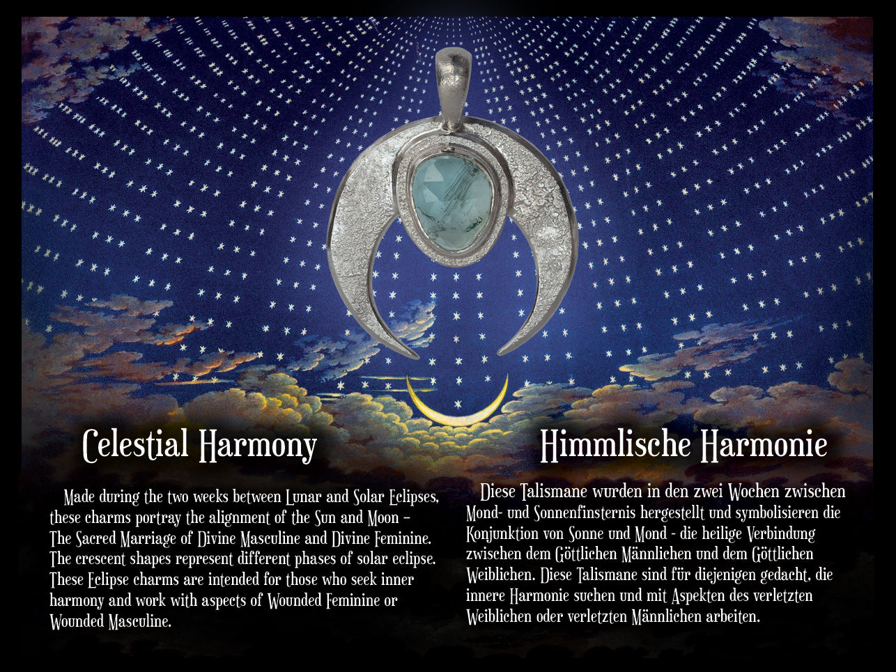 Astrologically, time during lunar or solar eclipses is very potent. It harmonizes and amplifies any energies one brings into this period. Shadow Self (the Moon) and Ego (the Sun) harmoniously combined with a tourmaline and aquamarine rose cut stones are intended to aid its owner to find inner balance, accept different facets of one’s psyche and discover inner illumination.